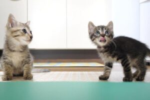お顔がクリーム色の優しい色合いのマンチカンの子猫です。マンチカンといえば手足が短いのが特徴ですが、子猫なのでその特徴もあまりはっきりとしていませんね。