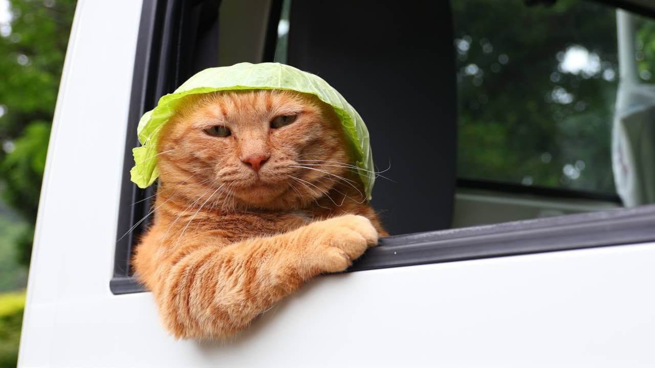 キャベツの葉を頭にかぶっても耐久性なんて皆無ですけど、茶トラ猫ちゃん的にアリなんでしょう。