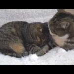 普通ならリスと猫は敵同士の関係ですが、このふたりはどこからどう見ても仲の良い遊び仲間です。