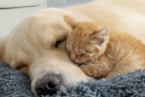 母猫にハグされた途端、眠りに落ちる赤ちゃん猫