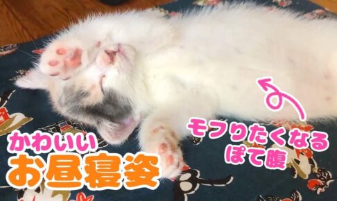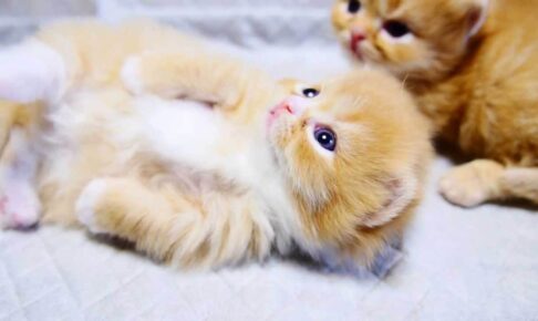 とろ〜んとした目で天井を仰ぎ、いまにも寝落ちしそうなマンチカンの子猫。 仰向けになって目はうつろになっていて目覚めているのか寝ているのかわからない状態でまさに寝落ち寸前といったところ。ところが急にスイッチが入ってお目々が…
