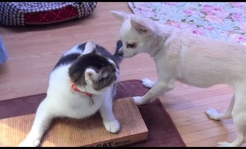 【爆笑】「ボクたち仲良しだもんね!」ワンコにプロレス技(?)を仕掛ける猫ちゃん。種族を超えた激しすぎる“じゃれ合い”に元気をもらえる!