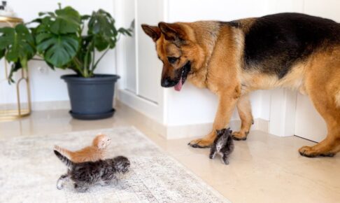 今回ご紹介するのはジャーマンシェパードのワンちゃんと赤ちゃん猫達との初対面シーンです。 これから一緒に暮らすようになるわけですけど、果たしてうまくやっていけるのでしょうか? それではワンちゃんがどんな反応を示すのかご覧く…