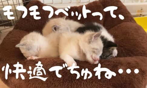 赤ちゃん猫たちがお母さん猫のおっぱいを飲んでいます。ベストポジションを死守しようとして兄弟同士で争奪戦になっているようです。 まだ小さな赤ちゃん猫ですが、すでに激しい競争が繰り広げられているのですね。 寝床の端っこのほう…