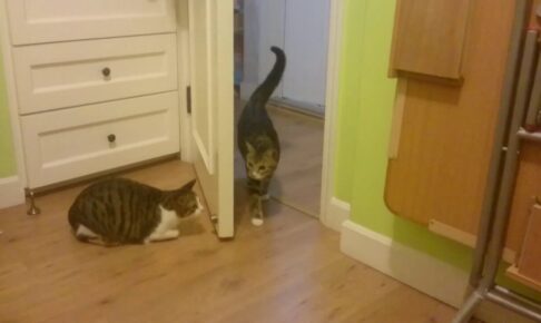 子猫のごはんの準備を始めるためにキッチンに立つとすぐに子猫のウリちゃんが気づいてやってきました。 ボブテイルのしっぽがかわいいウリちゃんは、お腹を空かせて飼い主さんの足元をウロウロしています。 するとそこへ兄弟のコロちゃ…