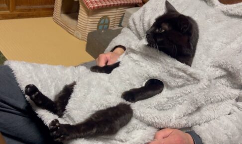 黒猫の天がパパに抱っこされてとても満足そうです。実は、ほんの30分前には大騒ぎをしていたのです。 大好きなパパがお風呂に入ってなかなか出てこないということでパパっ子の天は、落ち着かず部屋の中をうろうろとしていました。 も…