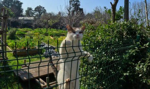 6匹の猫たちが仲良く並んで伏せているのは、軽トラの屋根の上です。後ろは緑が美しい森が見えていて猫たちが暮らすには最高のお家です。みんな同じ格好で屋根の上から高みの見物をしています。時折やさしい風が吹く中で最高のお昼寝スポ…