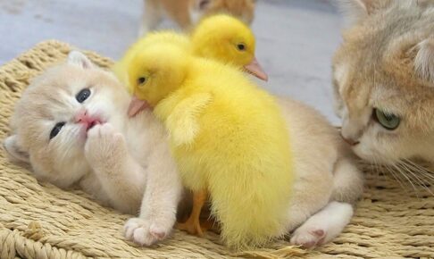 子犬と子猫が二匹でぴったりと寄り添ってまったりとしたくつろぎタイムを過ごしています。二匹ともまったく違和感なくくっついているのでお互いを兄弟だと思っているのかもしれません。猫と犬なのにとても自然な感じです。 こんなに小さ…