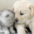 【出会った瞬間から!】ゴールデン・レトリバーの子犬と子猫が「運命の親友」に!愛と優しさに感動!