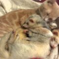 【子猫がとろける!】大きな声で「ゴロゴロ」!母猫が黄金の子猫たちに愛情たっぷりの「フミフミ」!