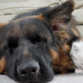 【恐怖から安心へ!】ジャーマン・シェパードを怖がっていた子猫が「添い寝」するまでの感動変化!
