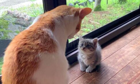 子猫のウッチャンがカメラに興味深そうに近づいてくる場面から始まります。 短い脚でヨチヨチ歩きで迫ってくるウッチャンでしたが、途中で子猫のソックンと遭遇したので、体を擦り付けあったり軽くじゃれ付いてコミュニケーションを始め…