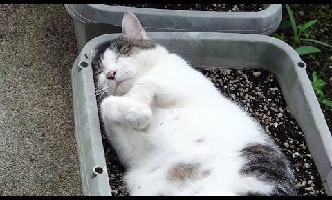 猫の、のらちゃんが気持ちよさそうに昼寝している場所は、まさかのプランターのなかでした。 ちょうど土がふわふわなマットレスの代わりになって心地よい眠りを誘っているのでしょう。大きさ的にも、のらのボディサイズにぴったりなので…