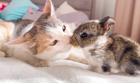 YouTubeチャンネル「The Fluffiest」が2022年4月7日に公開した動画「Funny Kitten Reaction to Baby Bunnies [Cuteness Overload]」が、異種間の可…