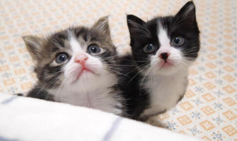 子猫のユメちゃんとチコちゃんが朝食準備をしている飼い主さんの足元でニャ〜ニャ〜甲高い声をあげながら大騒ぎ。早くごはんをちょうだいにゃ〜!必死になって訴えてくる様子が可愛すぎますね。 4本の足をグイッと踏ん張って顔を飼い主…