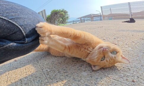 カーペットの上でボーッとした顔で寝転がっているハチワレ猫のひまわり。まるで魂が抜けてしまったかのような脱力状態です。 そのそばでは、豆大福の姿も見えます。豆大福もカーペットの上で、やはり気持ちよさそうに寝転がっています。…