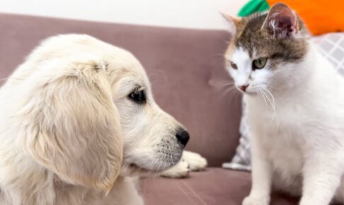 今回ご紹介するのは子犬とゴールデンレトリバー。 尻尾を振ってはしゃく子犬が可愛いのはもちろん、子犬に困惑するゴールデンレトリバーもとっても可愛いんです。 ではその様子をご覧ください。 ソファーの上には子犬がいます。 ソフ…